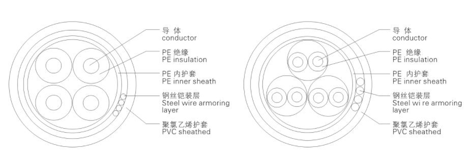煤矿用聚乙烯绝缘铝聚乙烤粘结层钢丝铠装聚氯乙烯护套通信电缆