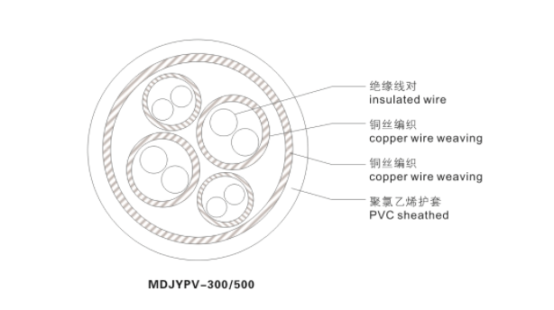 | MDJYPV | 煤矿用聚乙烯绝缘对绞分屏蔽及总屏蔽聚氯乙烯护套计算机电缆 Coal mine with polyethylene insulation shielding with pointsand total shielding, PVC sheathed computer cable | 防干扰性要求较高的煤矿场所使用电子计算机和自动化设备连接用,适用于固定敷设 Interference resistant to demand higher coal mine sites useelectronic computers and connect with automation equipmentsuitable for fixed installation |